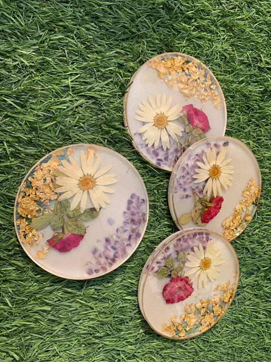 Floral Fusion Resin Coasters - White Rose & Daisies