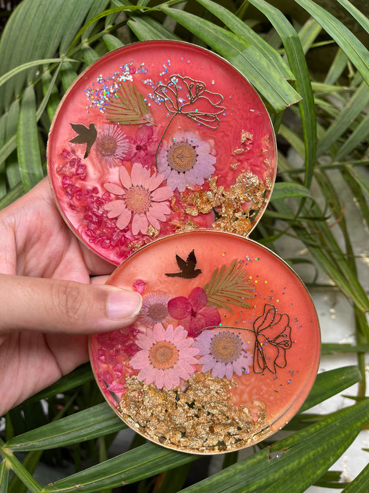 Floral Fusion Resin Coasters - Blush Rose & Margaret