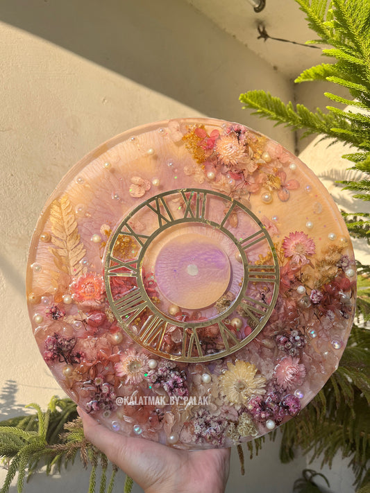 Introducing our Resin Wall Clock Collection, a fusion of artistic expression and practical functionality. Crafted with meticulous attention to detail, each clock stands as a distinctive work of art. Whether it's the captivating geode-inspired designs or the botanical-infused elegance, our collection redefines timekeeping as a statement of sophistication. Explore the range of customization options available in colour and size, ensuring a seamless integration with your unique décor. Transform your walls into expressions of individuality with the perfect Resin Wall Clock from our curated collection.