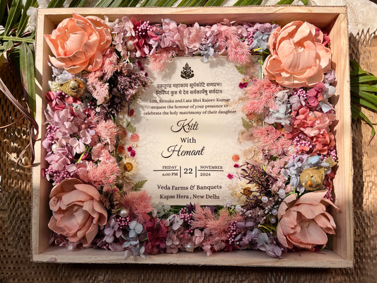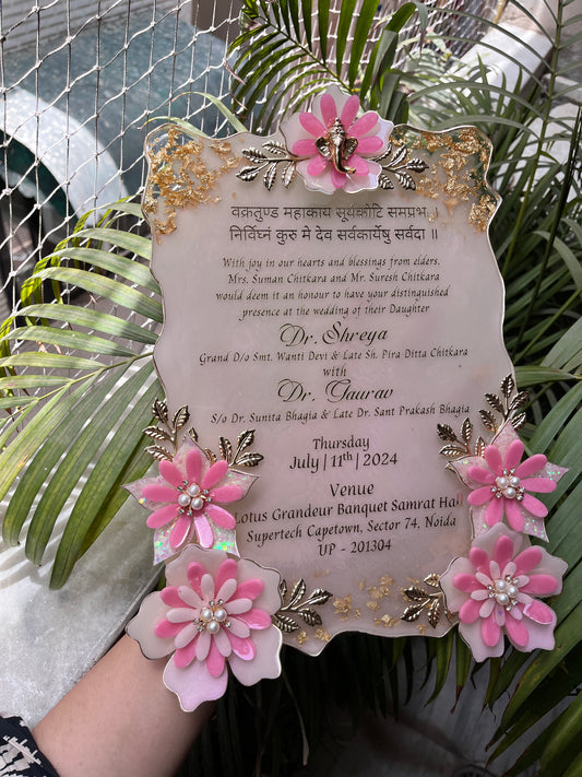 Introducing our exquisite Resin Wedding Card, perfect for inviting the groom and bride's families. Customize the color and text to match your theme. Make your first invite a lasting memory with this beautiful, personalized card.