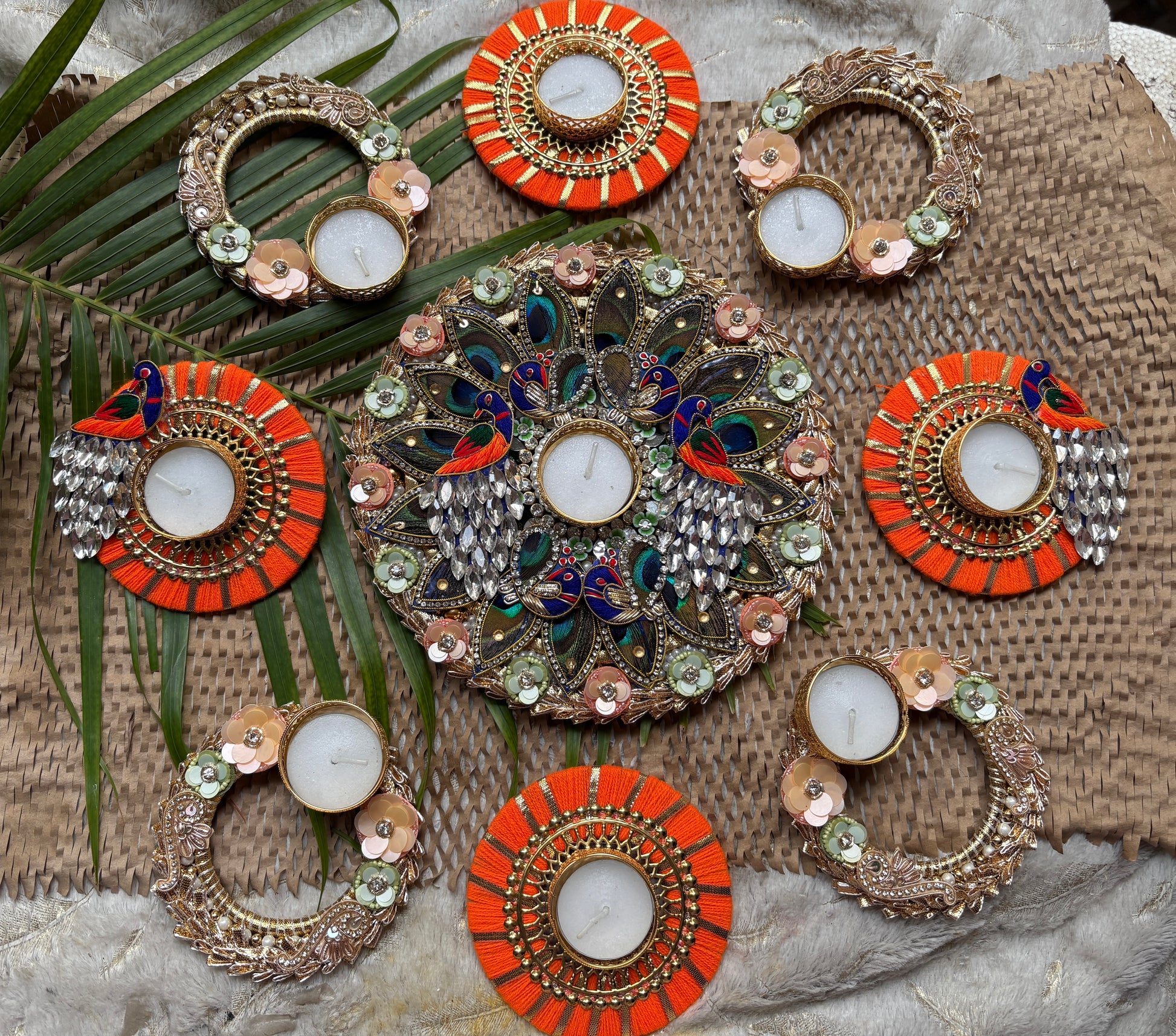 This ready-to-use rangoli decoration saves time while giving your home a festive makeover. The peacock theme symbolizes beauty and prosperity, making it not just a décor piece but also a touch of tradition for your celebrations.