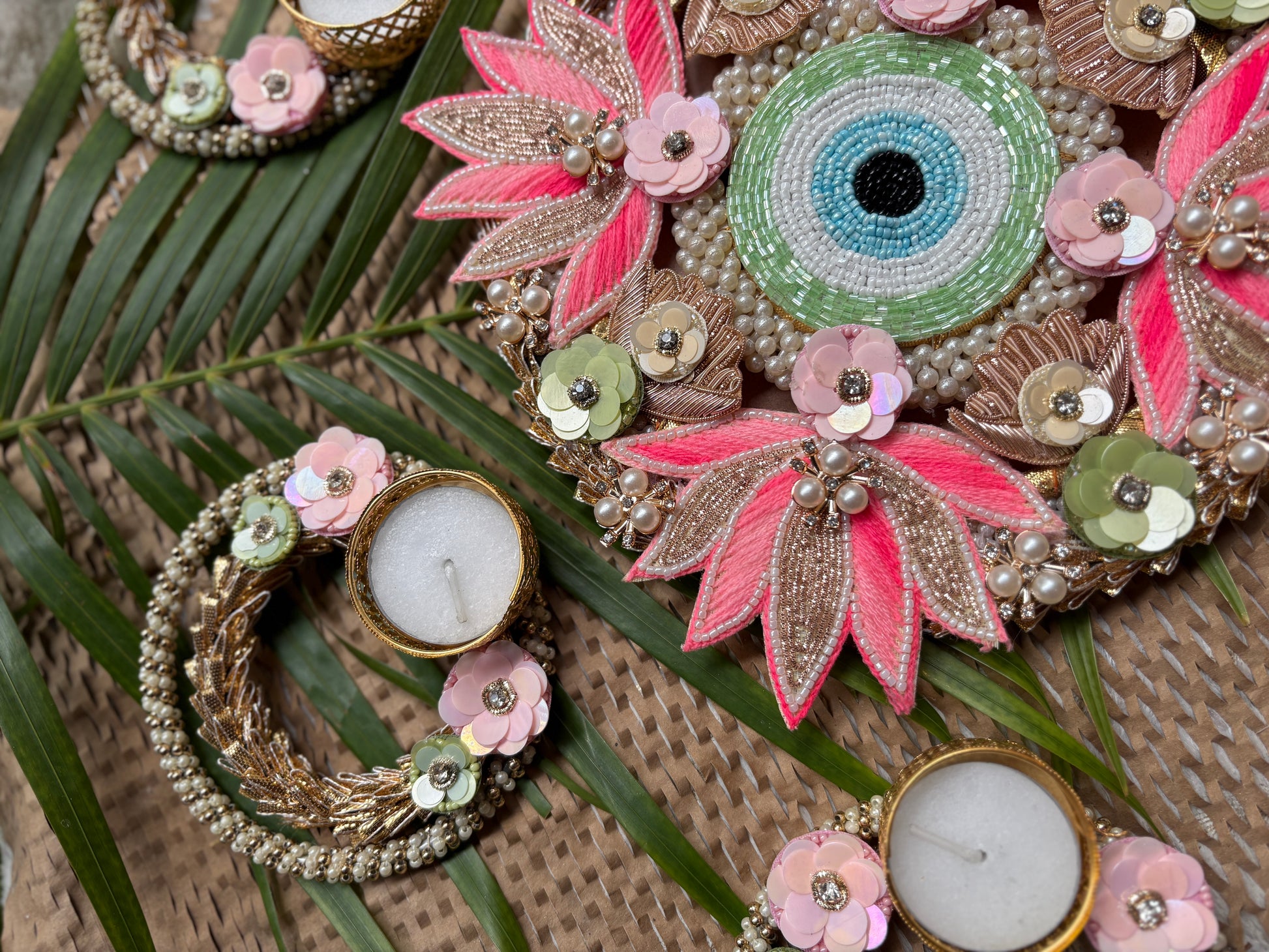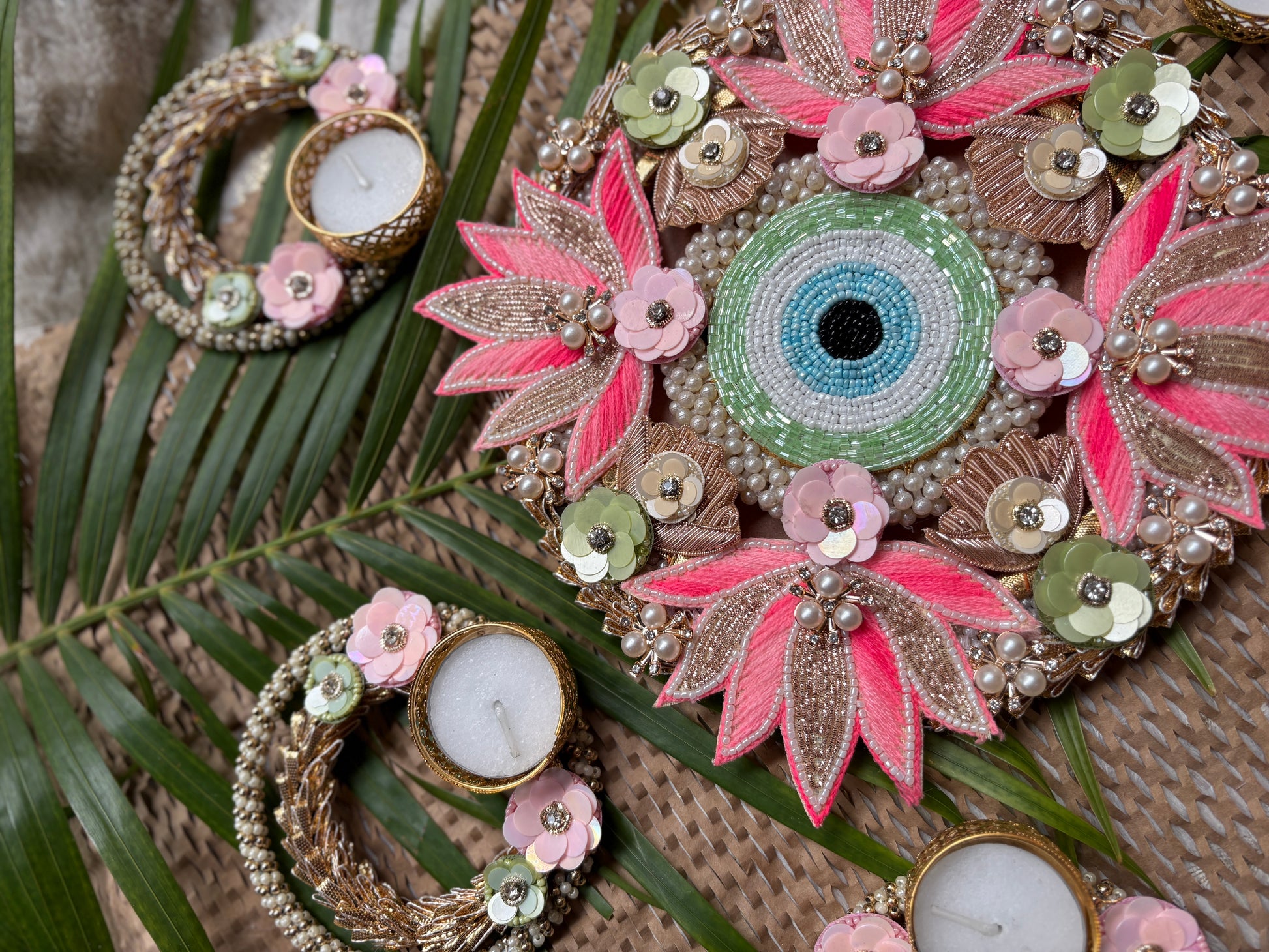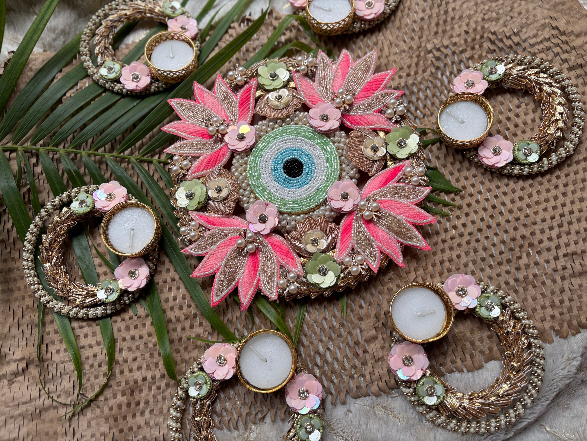 - Complete Rangoli Set – Includes 1 big centerpiece with an elegant base and 6 small tea light holders, designed to form a radiant arrangement.